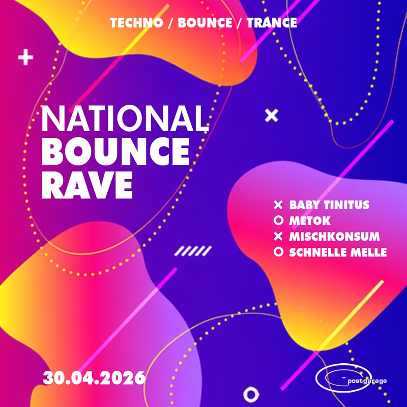30.04. – NATIONAL BOUNCE RAVE Vergesst schweren, dunklen Sound – wir bringen euch die Sonnenseite des Rave-Spektrums direkt auf den Floor.