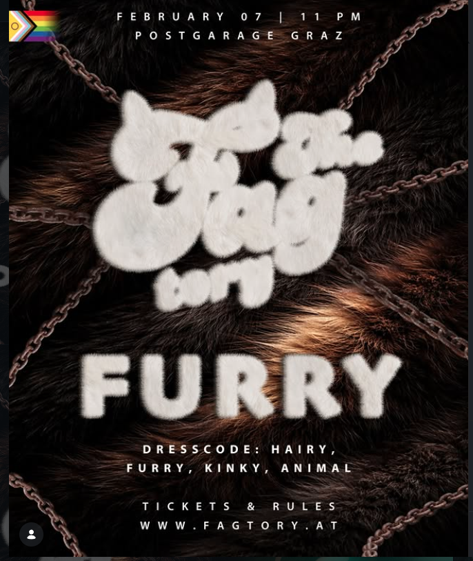 Die heißeste Party der Stadt geht in die nächste Runde, und diesmal wird es WILD: Bei unserer FURRY-Edition zeigen wir uns von unserer wildesten, animalischsten und pelzigsten Seite und verwandeln die postgarage in einen furry Safer Space! 🤎
